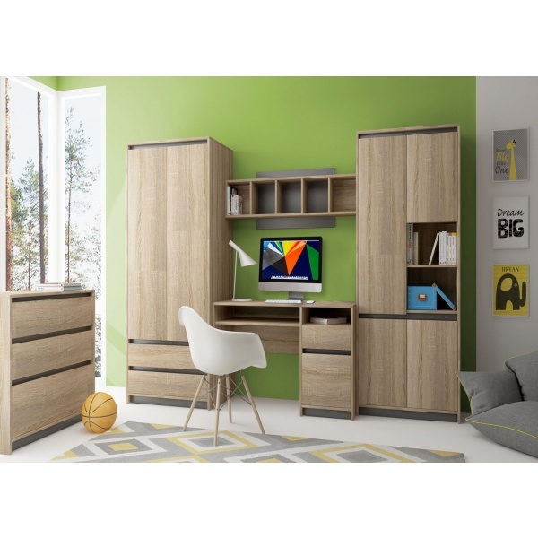 Un mobilier potrivit pentru o camera de tineret cu un stil simplist. Ofera un generos spatiu pentru depozitare cuprinzand numeroase sertare si rafturi astfel ca va ofera loc pentru organizare in incapere.