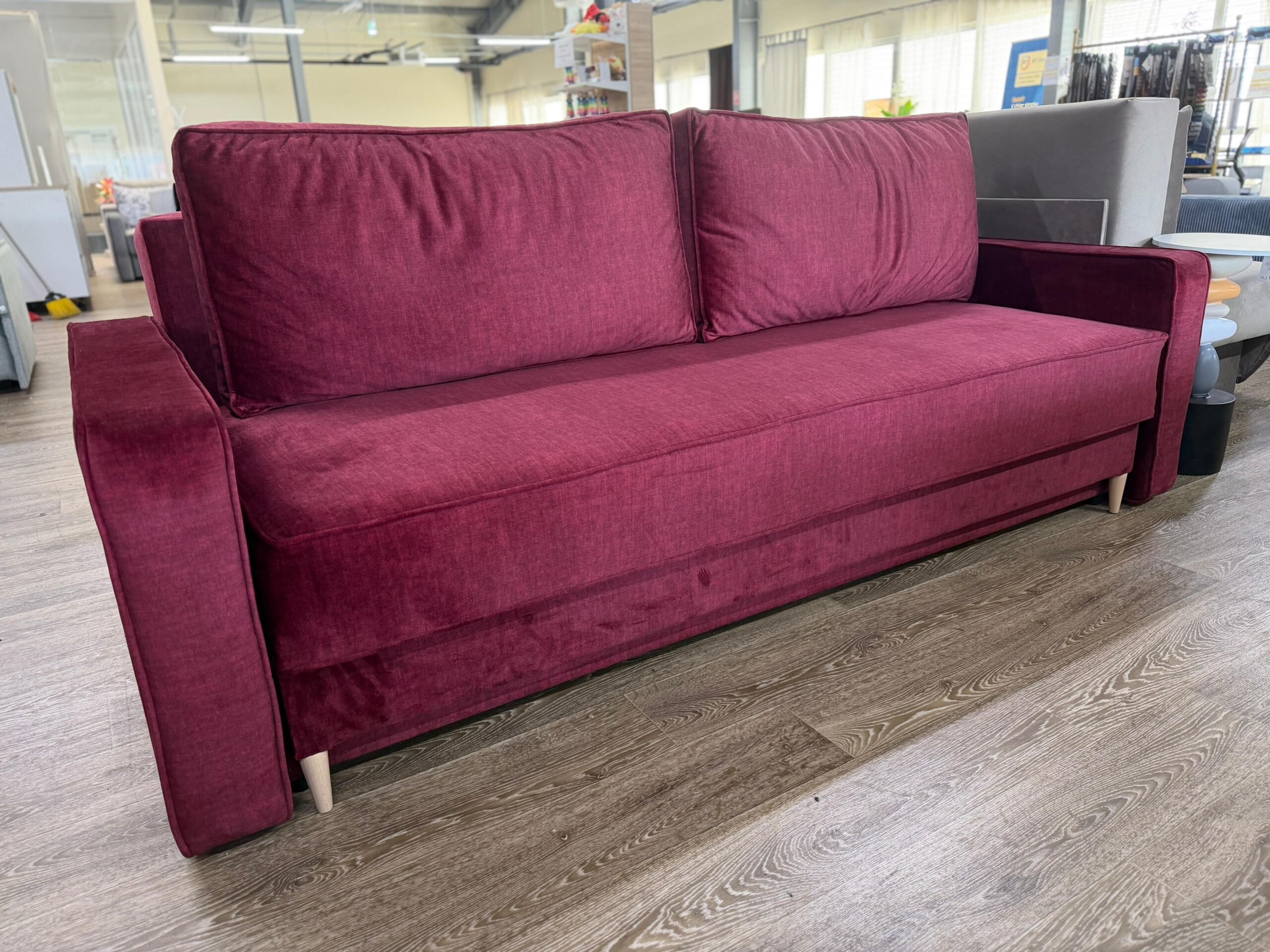 Canapeaua FASTA este ideală pentru orice living, oferind confort zilnic și funcționalitate. Este extensibilă, transformându-se rapid într-un pat de 193 x 150 cm, și dispune de ladă de depozitare